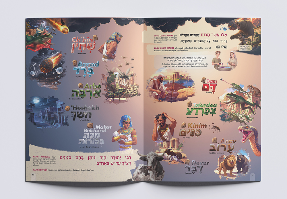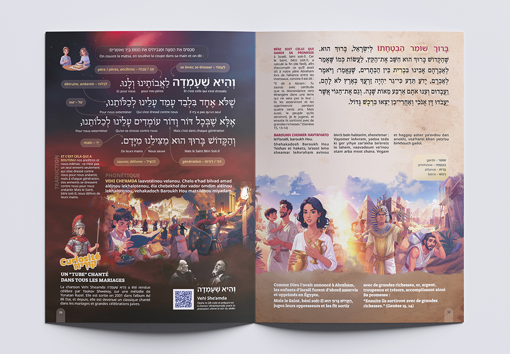 Chaque étape du Séder est expliquée et illustrée, pour que petits et grands sachent exactement quoi faire, quand et pourquoi.