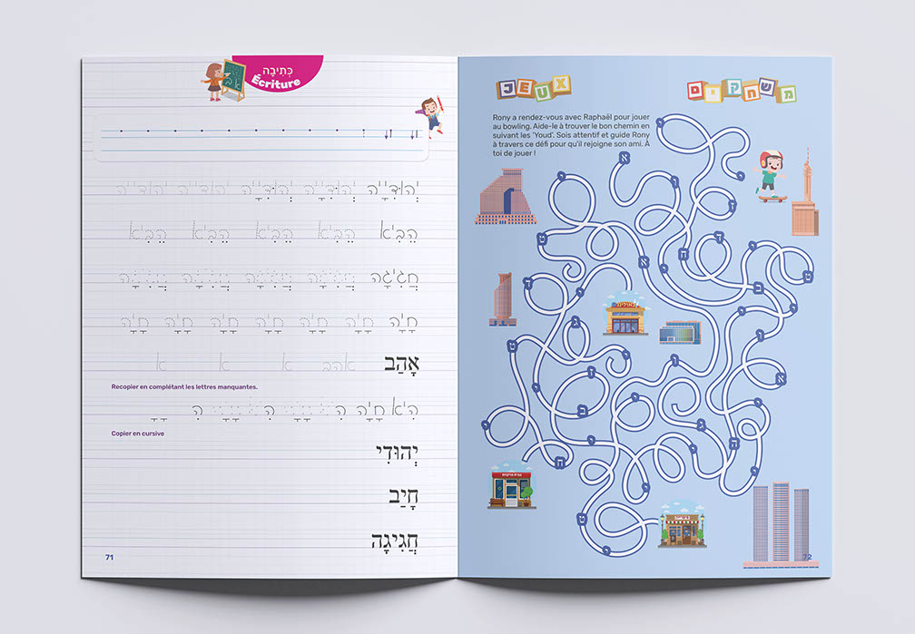 Il connecte les élèves à la culture et au patrimoine d'Israël. offrant une immersion dans la langue au quotidien et dans la tradition juive. Grâce à des vidéos accessibles par QR code, il permet une révision interactive et amusante à la maison, favorisant une expérience d'apprentissage partagée entre enfants et parents.