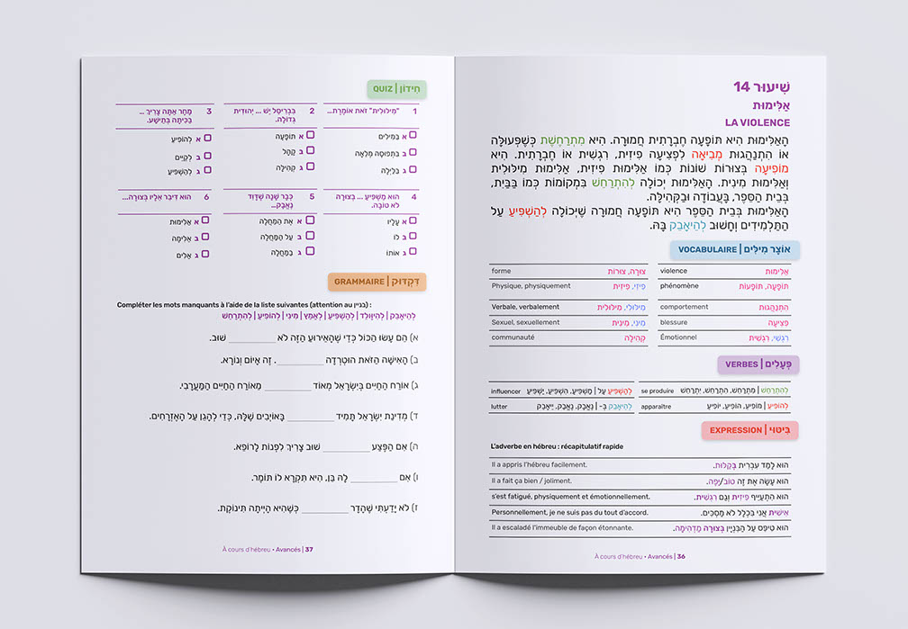 Notre parcours de formation "Avancés" de 20 leçons, disponible sur "acoursdhebreu.com", offre à l'apprenant l'opportunité de développer une autonomie dans son apprentissage de l'hébreu.